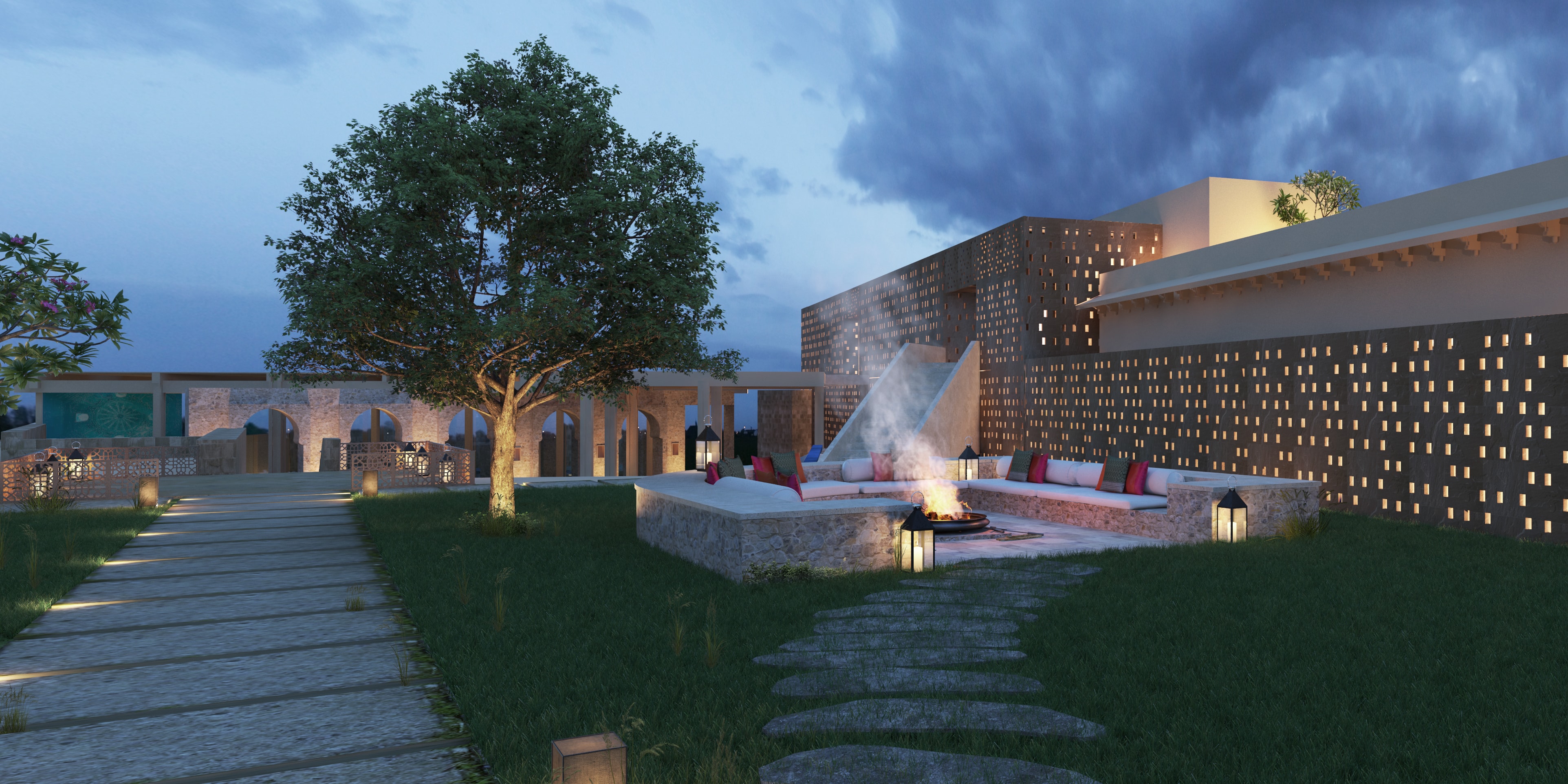 The proposed development of the property will be a two fold programme- the sensitive, articulate restoration of the existing fort into a boutique hotel, and the establishment of a new, luxury hotel directly across the river, both having 100 rooms each. The river connecting both the hotel properties provide for mesmerising views from almost all parts.