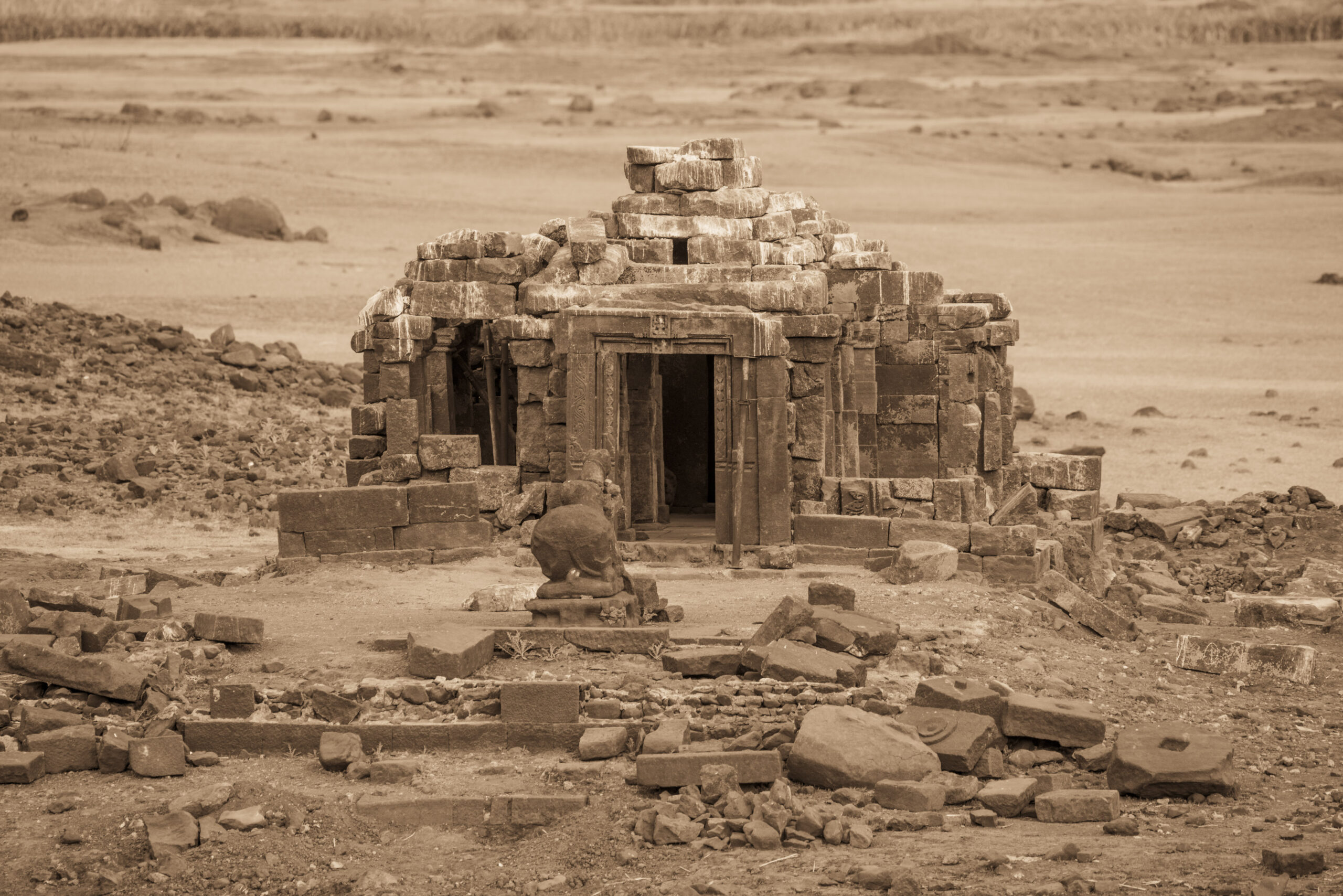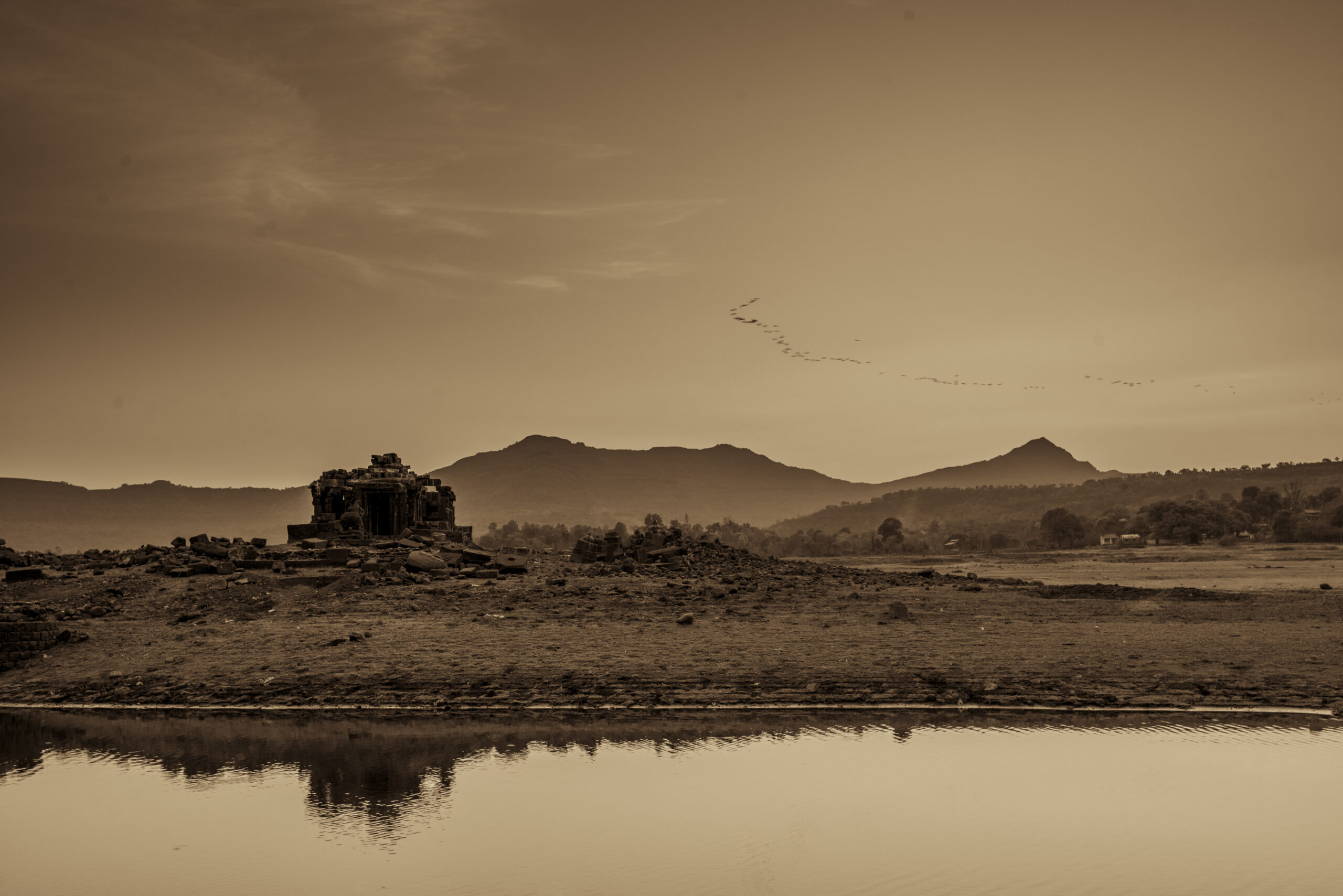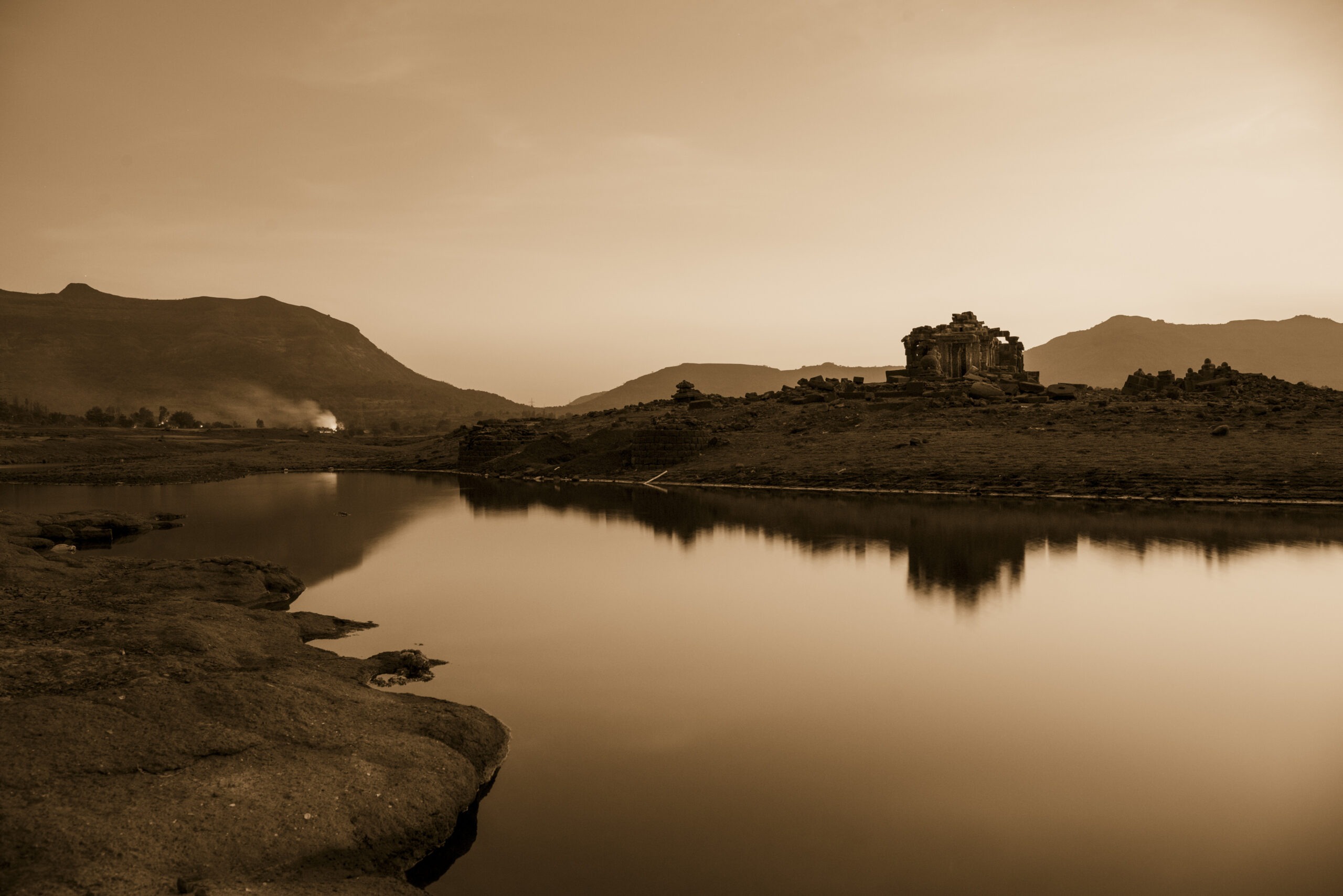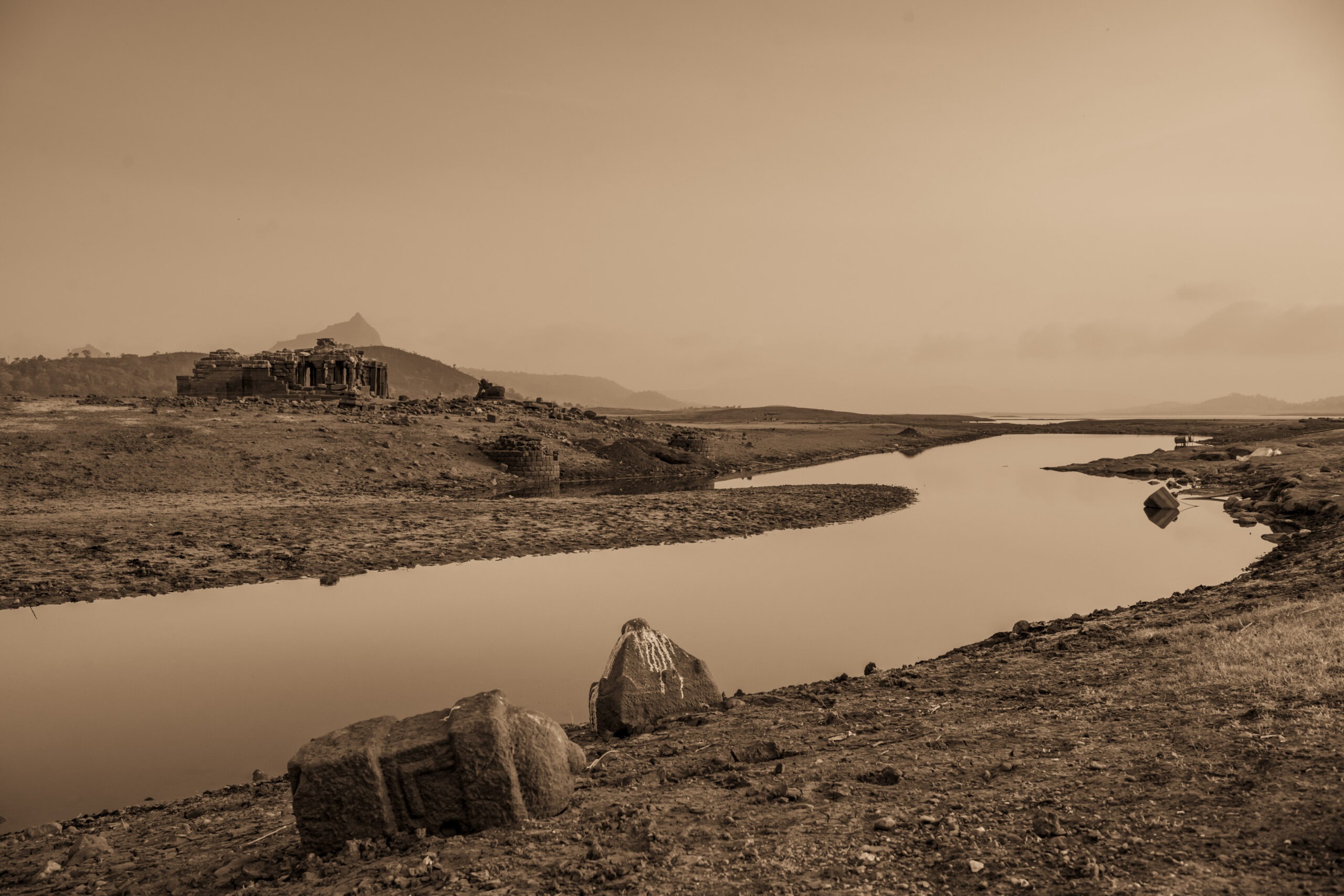 Located discreetly in the submerged depths of Pawna Lake, between the trinity of Tungi , Lohgarh and Tikona Fort. This 14th century temple magically reappears from the murky water on the onset of summers lasting till May when the dam discharges water from the lake. When we found the temple, the stone blocks from the temple were scattered all across the undulating landscape.owing to the periodic yearly cycle of filling and emptying of the lake, We at Malik Architecture, took upon ourselves to employ skilled stone masons from Rajasthan to put back together the 3D jigsaw puzzle of scattered stone blocks by systematically naming each block and carefully rebuilding it piece by piece using photogrammetry and 3D modelling softwares.
